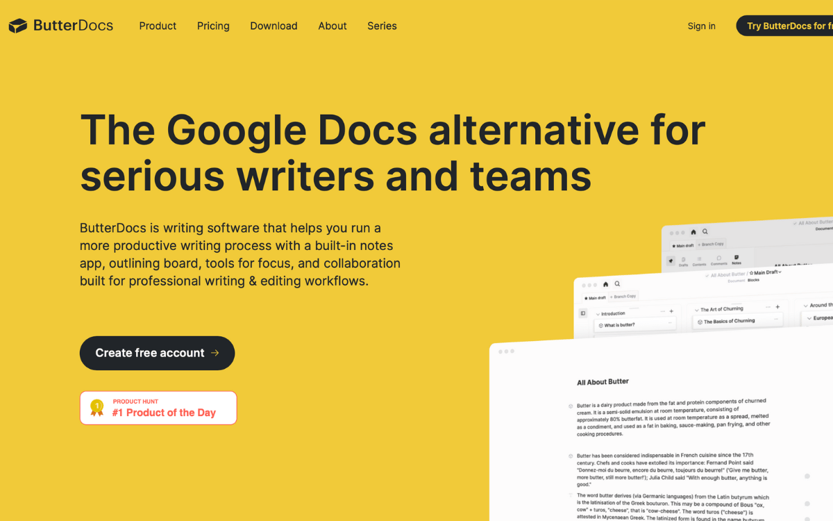 A Google Docs alternative with a built-in notes app, outlining board, tools for focus and more.