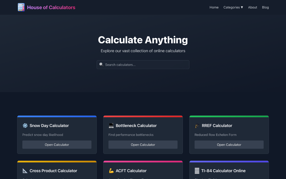 From basic math to specialized tools, this growing collection offers many user-friendly calculators in one place.