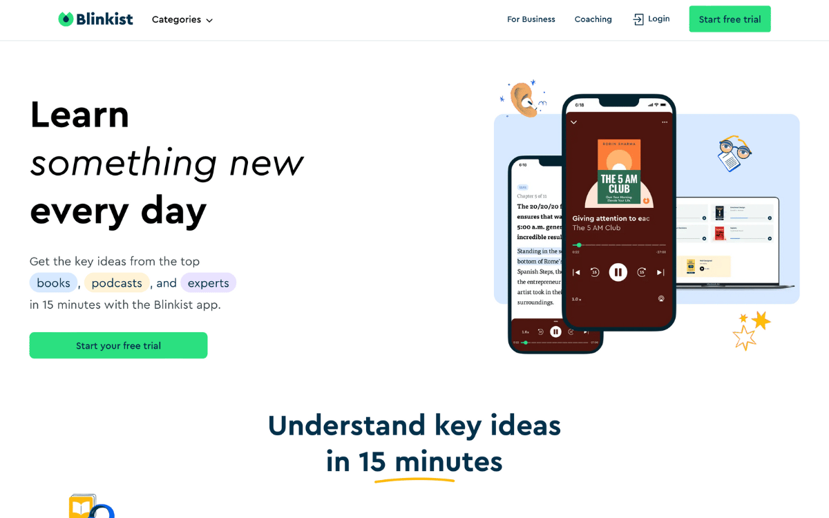 Get the key ideas from the top books, podcasts, and experts in 15 minutes with this app.