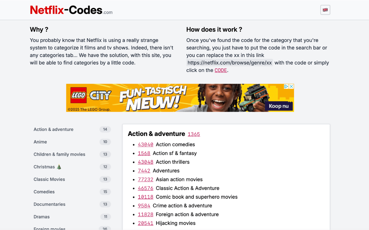 Find specific Netflix categories and genres, and easily browse a list of recommendations that match your mood.