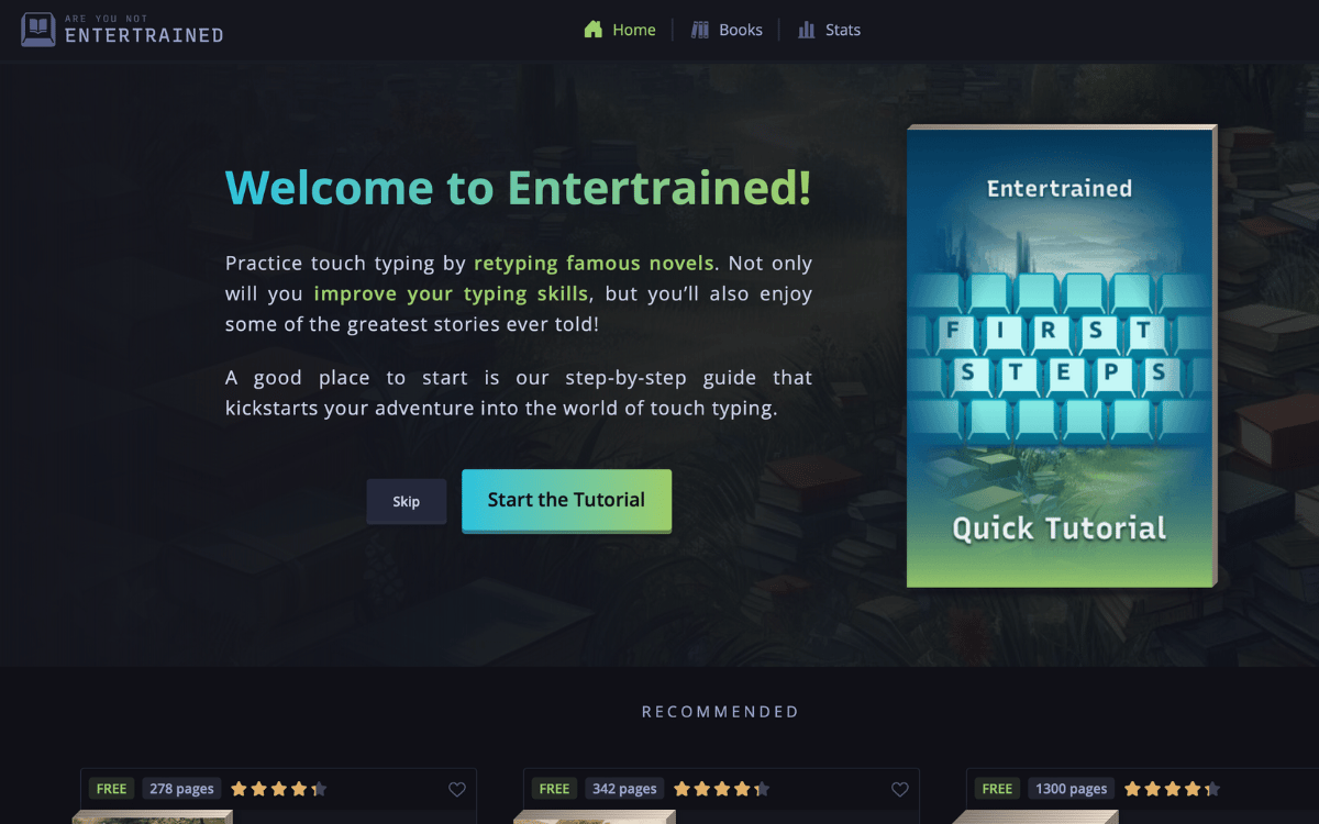 Practice touch typing by retyping famous novels. Not only will you improve your typing skills, but you’ll also enjoy some of the greatest stories ever told!