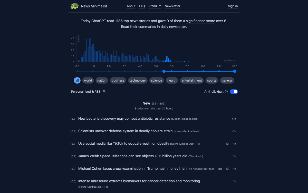 This tool uses AI to read the top news every day and rank them by significance on a scale from 0 to 10 based on 8 factors.