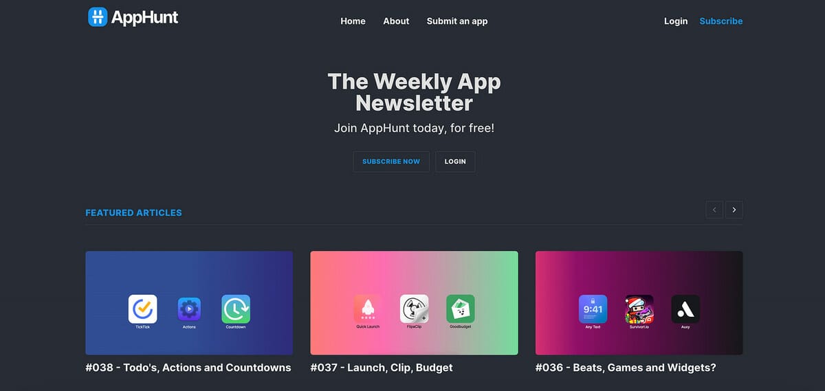 AppHunt is a free weekly newsletter that helps you discover the best new iOS apps.
