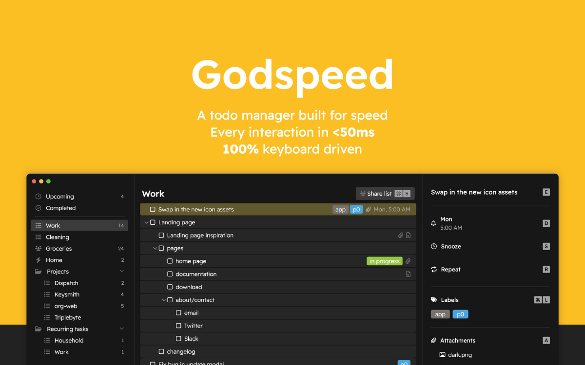 A to-do list built for speed. Every interaction in < 50ms and 100% keyboard driven.