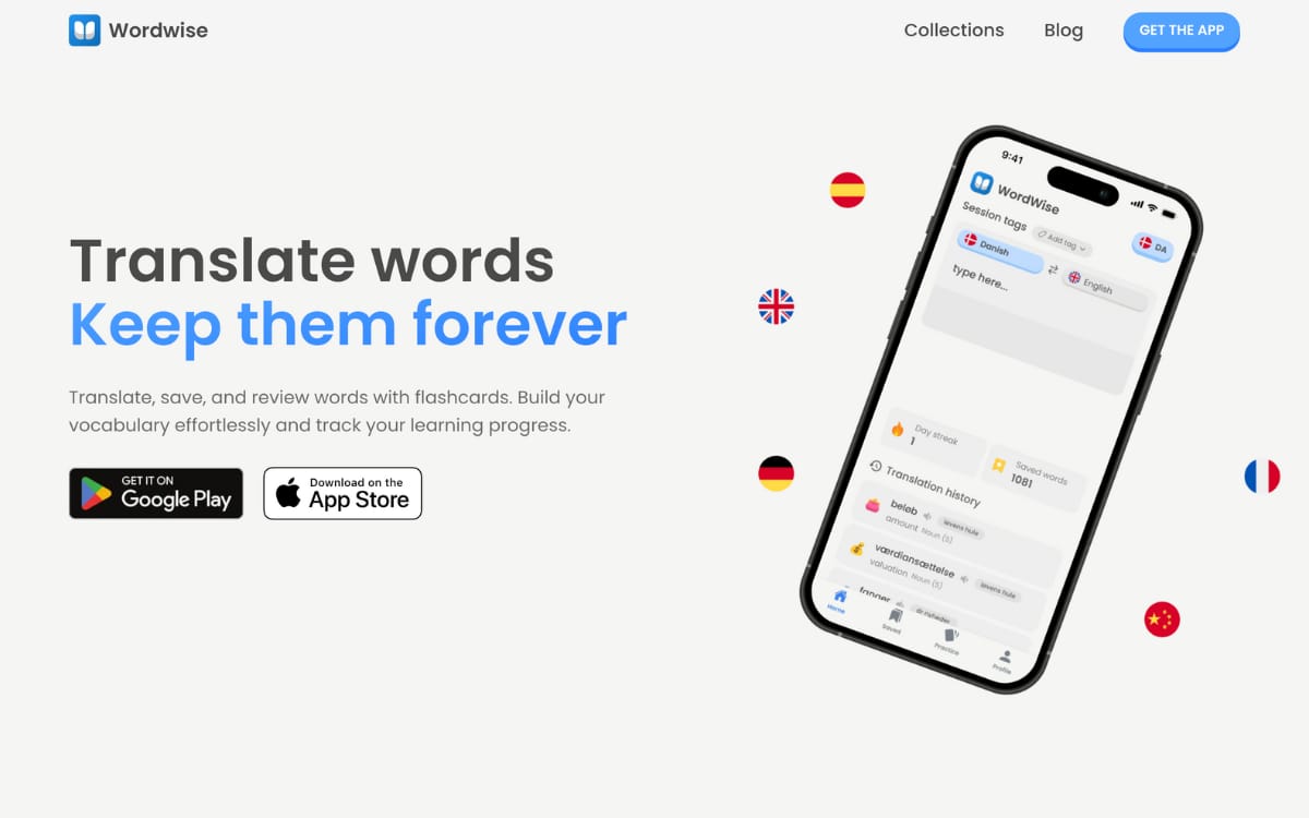 A mobile app that helps you save and practice words you learn by letting you translate, save them and review them with flashcards later.