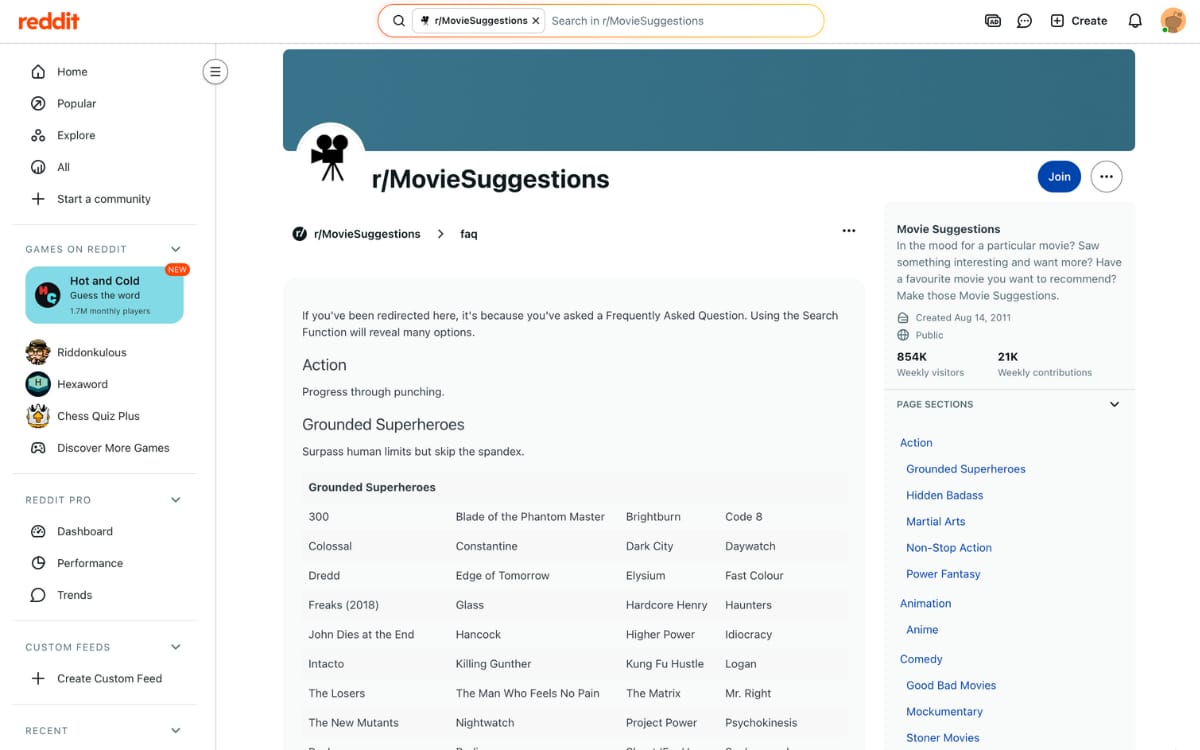 A Reddit wiki packed with movie suggestions for almost any genre you can think of, plus helpful tips for finding your next favorite film.
