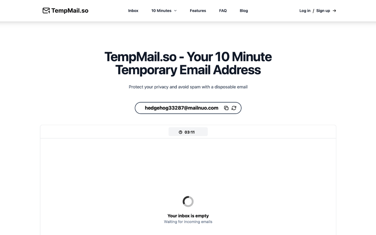 This tool creates a temporary email address for receiving emails that only lasts 10 minutes.