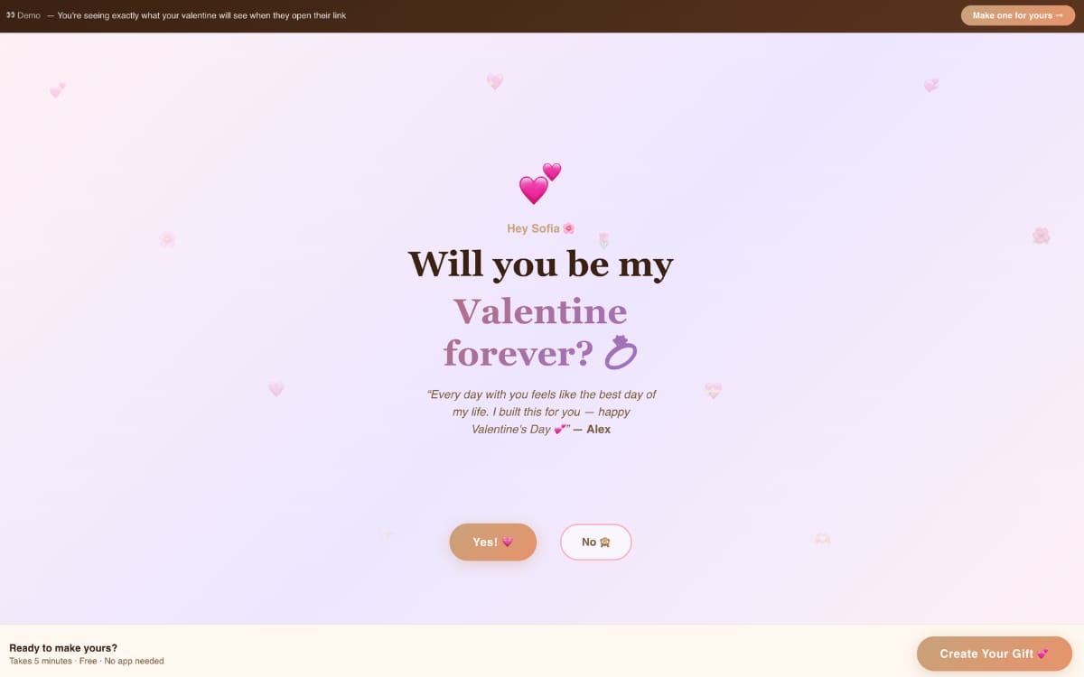 With a slight delay: create a valentine page with your own message, memories and inside jokes to surprise someone you love. Save it for next year.
