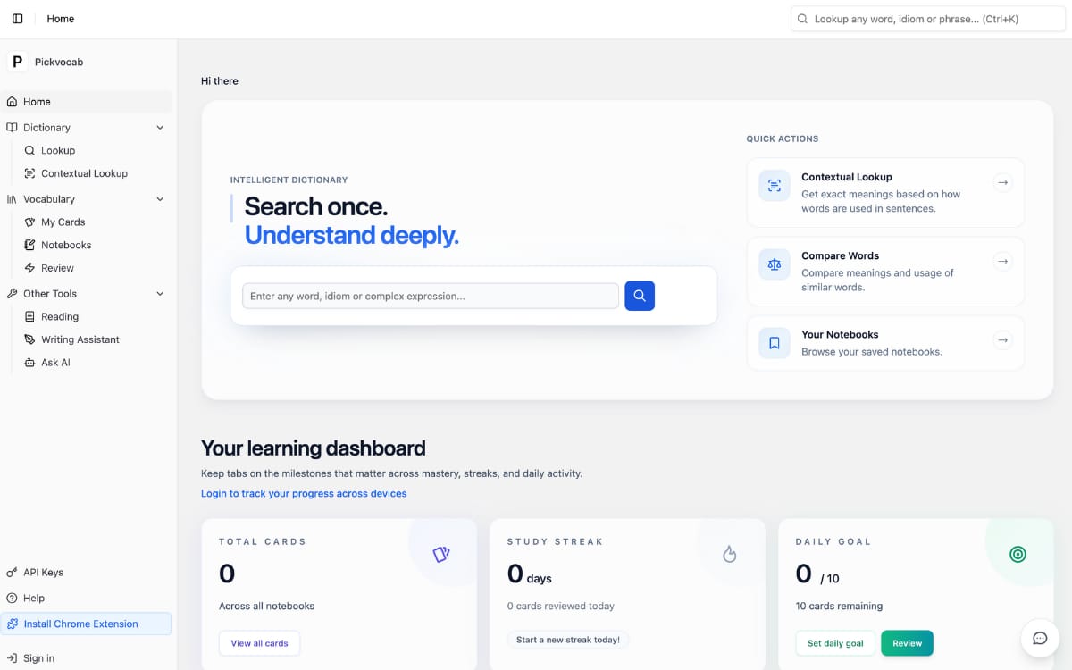 An AI tool to look up any word, phrase or slang in context and helps you build personalized vocabulary notebooks in any language.