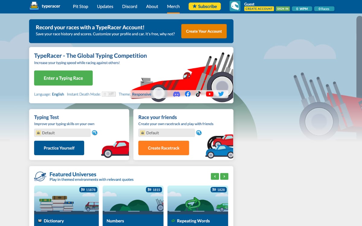 A multiplayer typing game where you race other people by typing quotes from books, movies and songs as fast and accurately as you can.