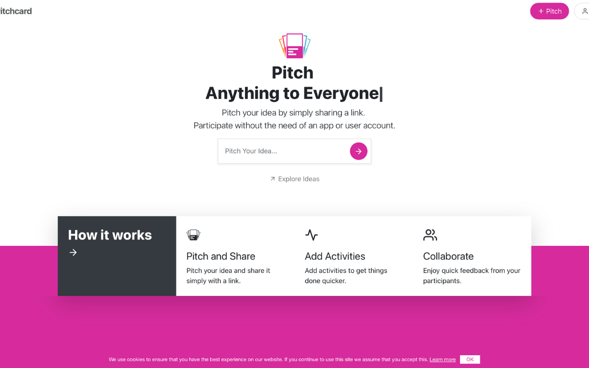 Pitch your idea by simply sharing a link and people can participate without the need of an app or any account.