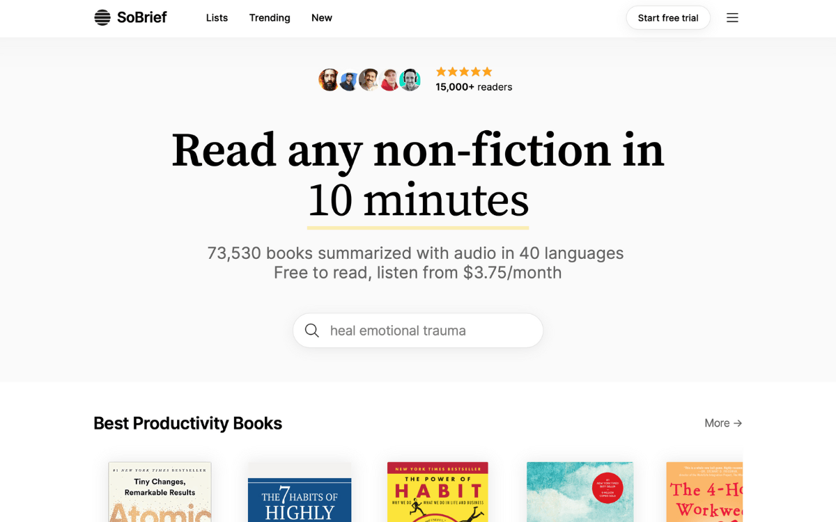 A site where you can read or listen to summaries of over 73,000 books in just 10 minutes.