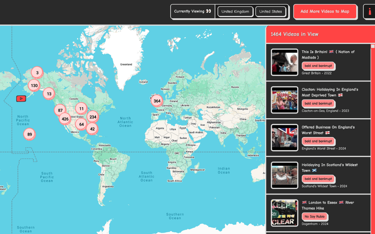 If Google Maps and YouTube had a baby… This site lets you explore travel vlogs pinned to their real-world locations.