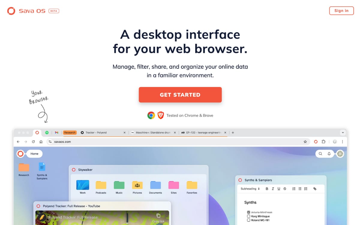 A browser tool that gives you a desktop-like screen where you can organize tabs, links, feeds, and folders all in one place.