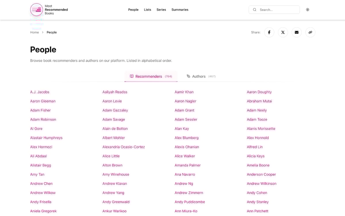 A directory that shows books recommended by over 750 well-known founders, thinkers and creators so you can see what they think is worth reading.