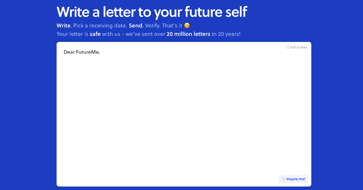 FutureMe lets you write a letter to your future self. Pick a receiving date and send. It’s that simple!